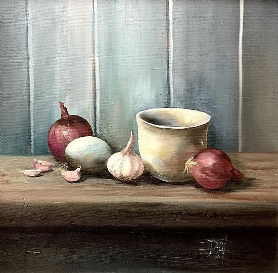 Still Life Lovely jugs (sold) Clementines (sold) Nectarines (sold) Conference (sold) Chestnuts (sold) Waiting (sold) Onion still life
